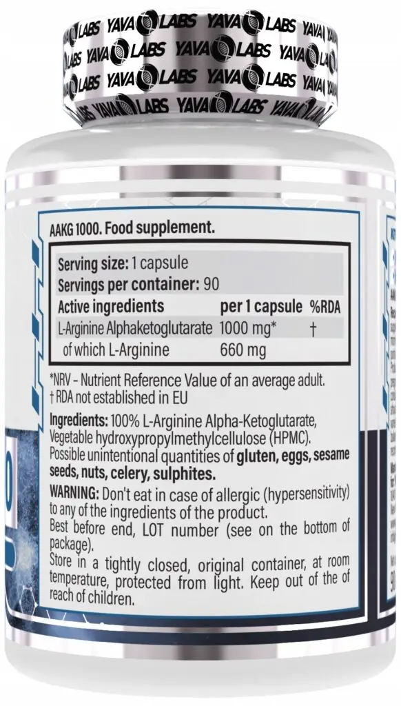 YAVA LABS – AAKG 1000 (alfa-ketoglutaran argininy 1000) to wysokiej jakości suplement diety uzupełniający aminokwas L-argininę. Zwykle jest stosowany jako przedtreningówkaWzmacniacz. Opracowaliśmy ten produkt, aby przynosił korzyści kulturystom i sportowcom siłowym w zwiększaniu masy mięśniowej i przyjmowaniu składników odżywczych oraz sportowcom wytrzymałościowym w celu zmniejszenia zmęczenia mięśni. Poprawia produkcję tlenku azotu, związku poprawiającego przepływ krwi, co poprawia zaopatrzenie mięśni zarówno w tlen, jak i składniki odżywcze. Ponadto AAKG jest środkiem rozszerzającym naczynia krwionośne, co oznacza, że rozszerza naczynia krwionośne w organizmie. Eksperci są zgodni, że to rozszerzenie naczyń krwionośnych umożliwia transport większej ilości tlenu, krwi i składników odżywczych do mięśni, poprawiając wydolność tlenową sportowca. Dlatego alfa-ketoglutaran argininy jest obecnie głównym składnikiem większości suplementów przedtreningowych i zwiększających objętość komórek.