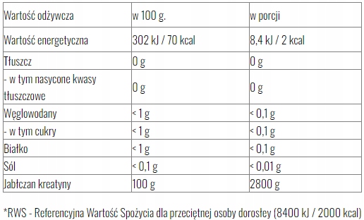 - Środek spożywczy specjalnego przeznaczenia żywieniowego dla sportowców, nie może być stosowany jako substytut zróżnicowanej diety oraz zdrowego stylu życia.