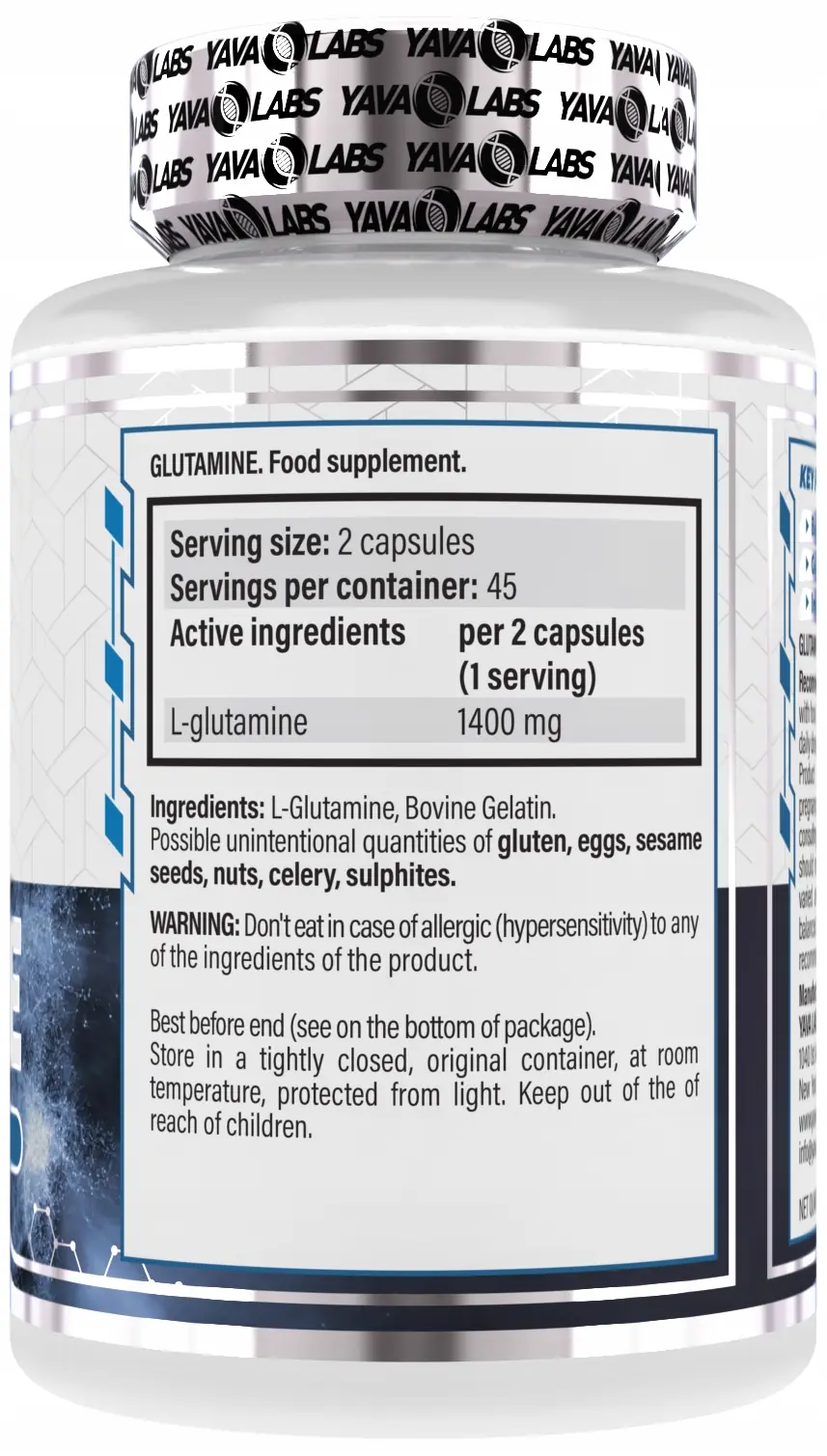 GLUTAMINA 1400 mg – 90 kapsułek Yava Labs