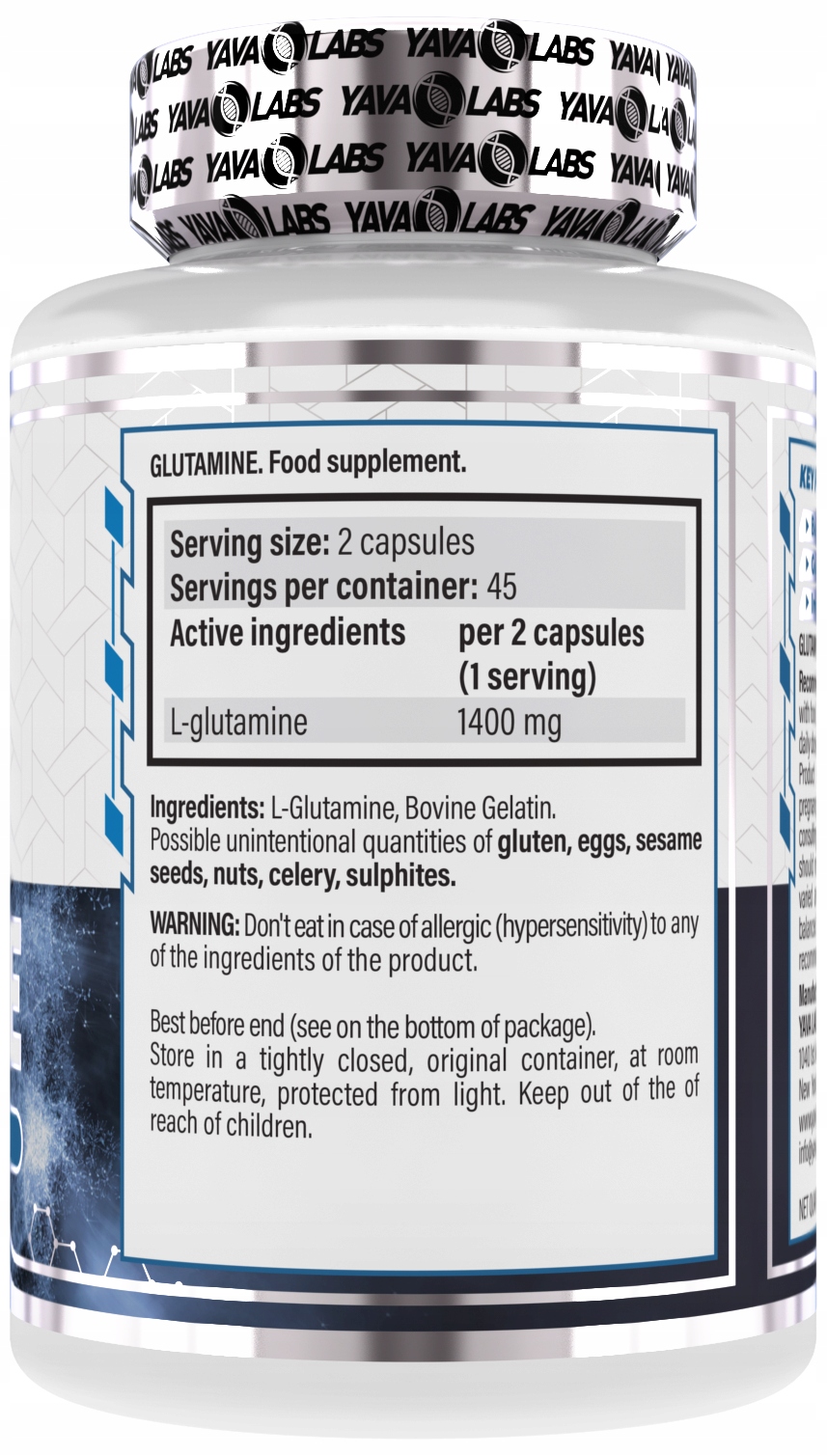 GLUTAMINA 1400 mg Regeneracja i Wsparcie Treningu – 90 kapsułek Yava Labs