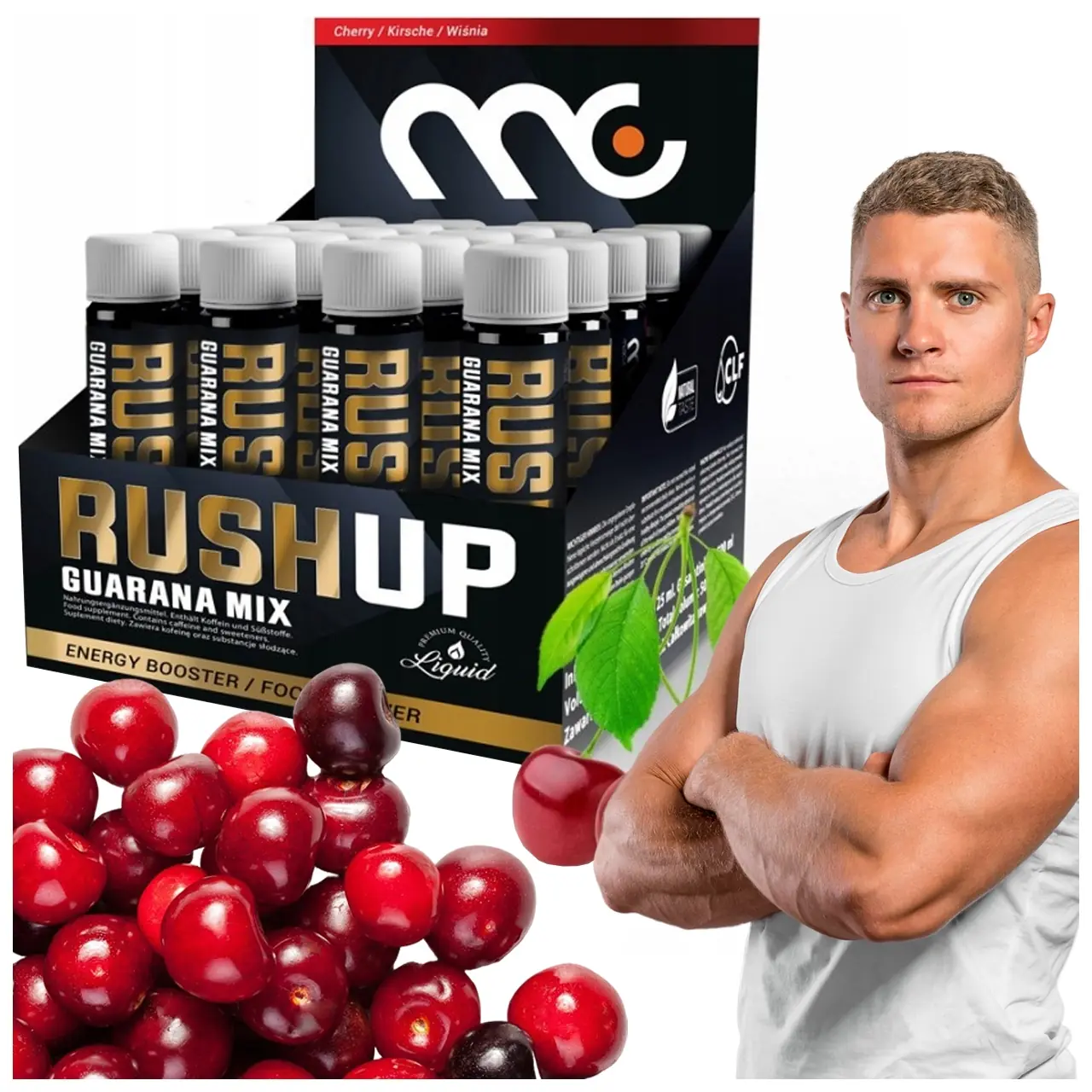 GUARANA KOFEINA TIAMINA ENERGIA WYTRZYMAŁOŚĆ RUSHUP MUSCLE CLINIC 20 FIOLEK