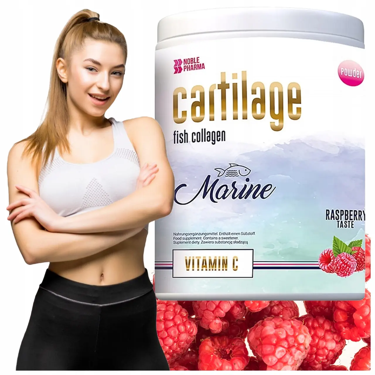 NOBLE PHARMA CARTILAGE MARINE KOLAGEN RYBI MALINA – Twój Klucz do Zdrowej Skóry, Włosów, Paznokci i Stawów