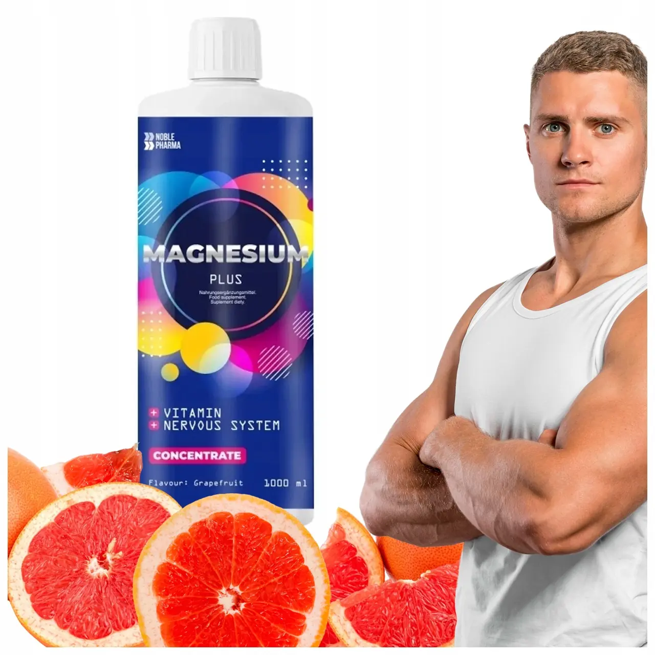 Magnesium Plus Magnez w płynie na Skurcze i stres Grejfrut 1L 100 porcji