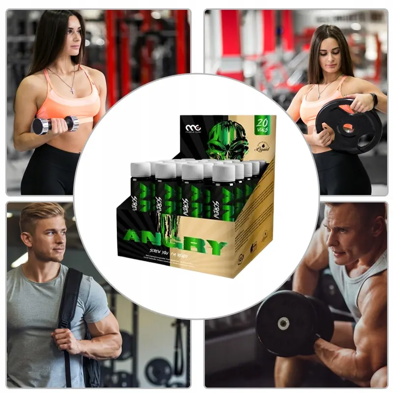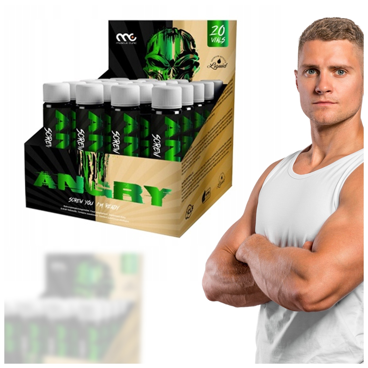 MUSCLE CLINIC ANGRY PREWORKOUT PRZEDTRENINGÓWKA SHOT ENERGIA POMPA 20FIOLEK