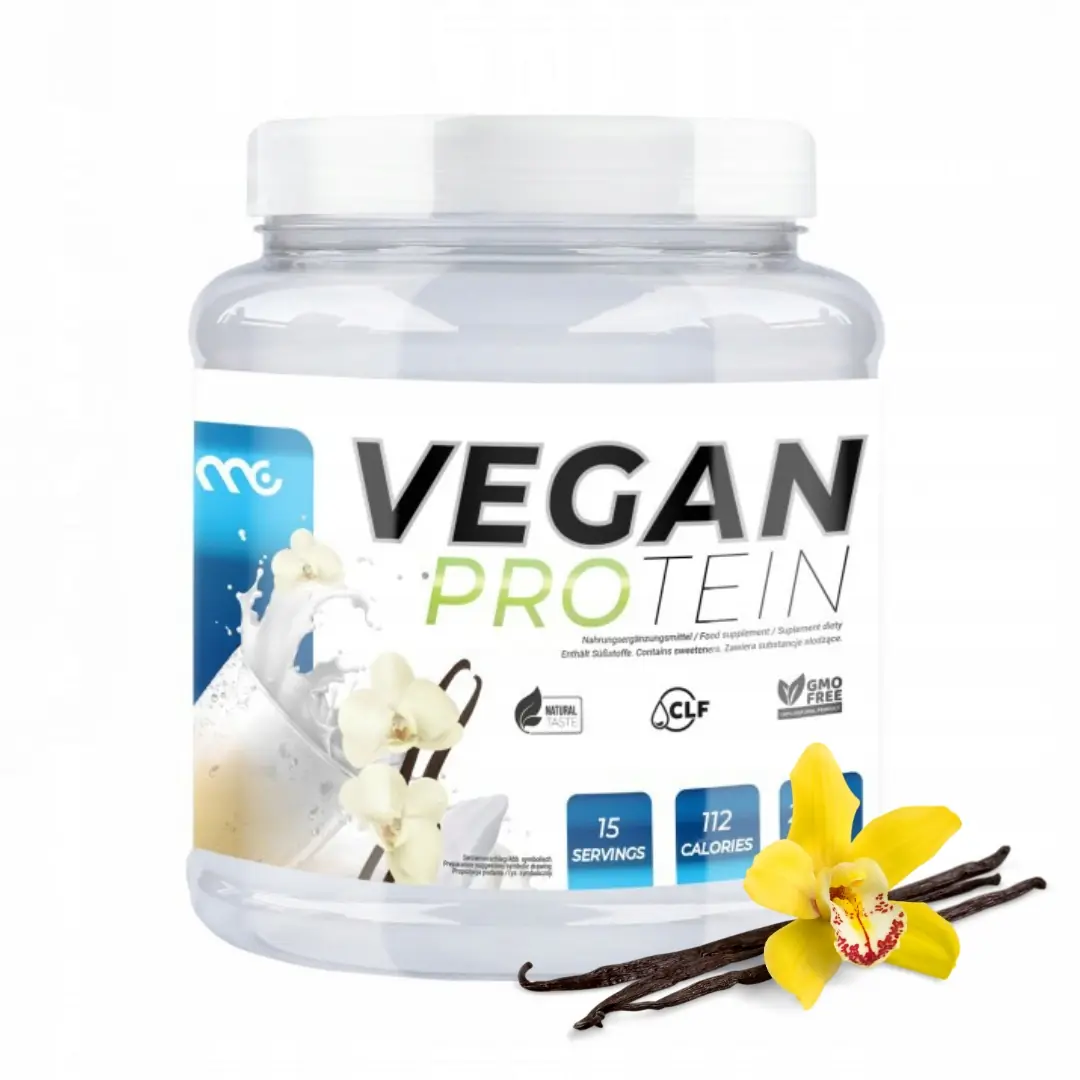 MUSCLE CLINIC ISOVEGAN UP – WEGAŃSKA ODŻYWKA BIAŁKOWA – IZOLAT SOI, BIAŁKA GROCHU I RYŻU 450G O SMAKU WANILIOWYM