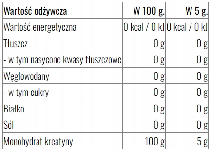 Skład: 100% monohydrat kreatyny.