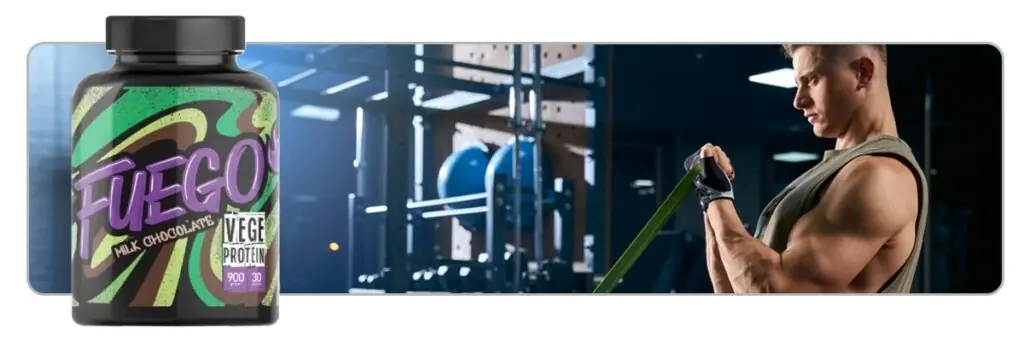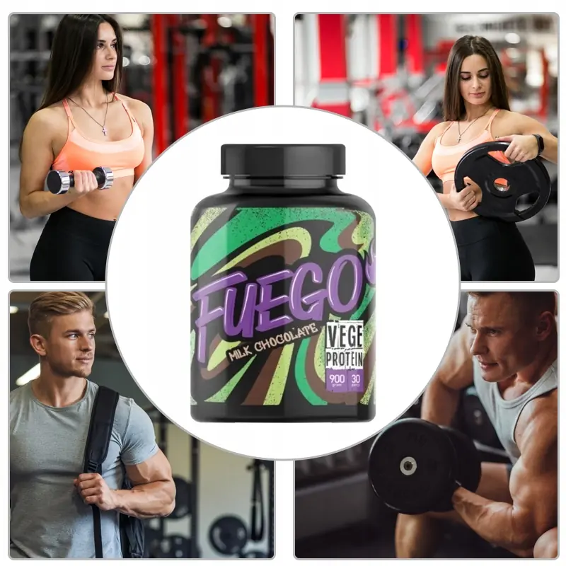 FUEGO Vege Protein 900 g to wysokiej jakości białko roślinne, pochodzące z grochu, drożdży oraz ryżu.