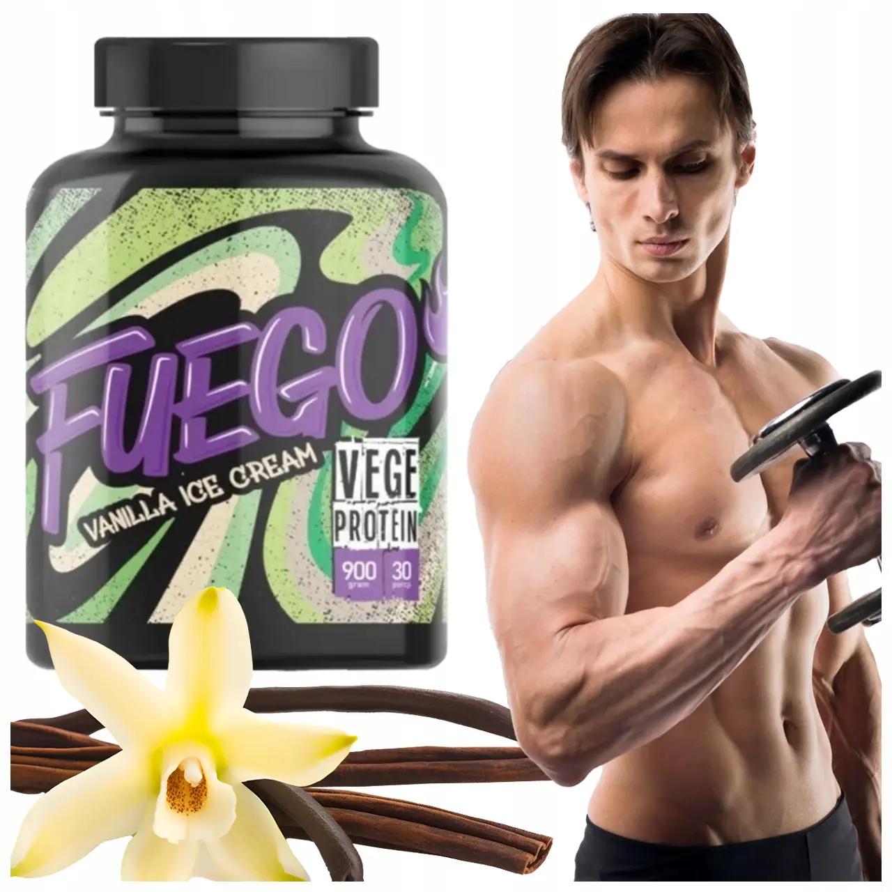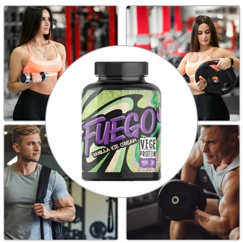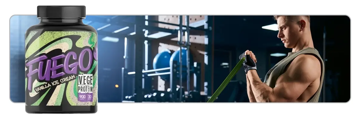FUEGO Vege Protein 900 g to wysokiej jakości białko roślinne, pochodzące z grochu, drożdży oraz ryżu. Taka mieszanka dostarcza pełnowartościowego białka i jest wegańską alternatywą dla białek serwatkowych.