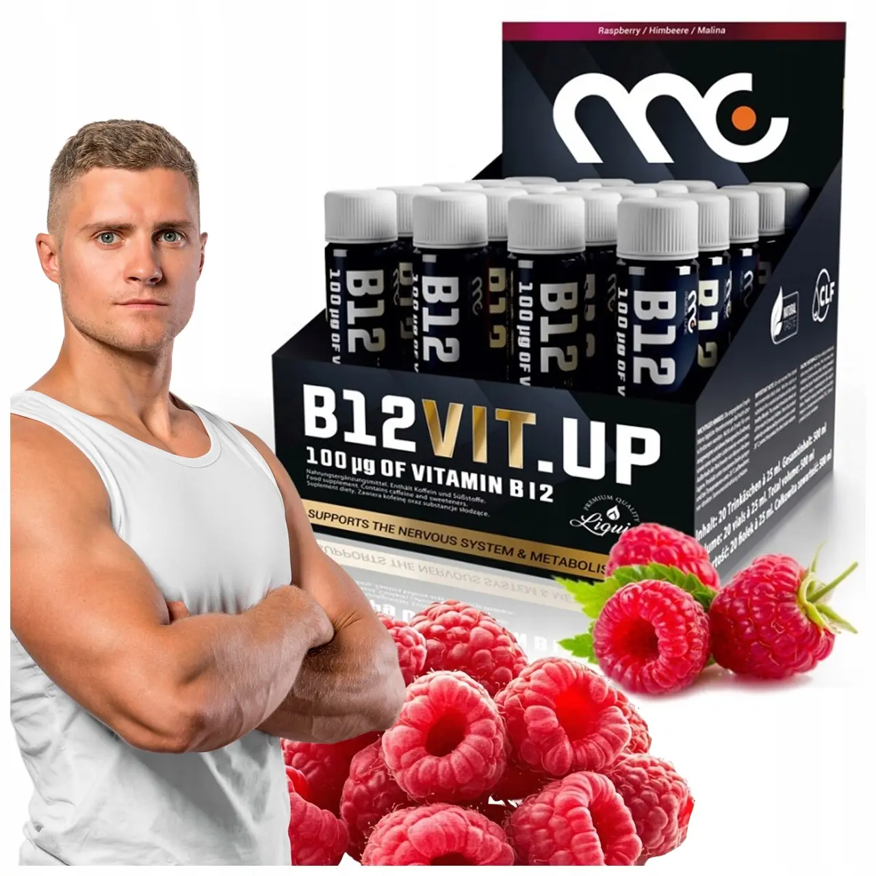WITAMINA B12 NA ZMĘCZENIE STRES UKŁAD TRAWIENNY MUSCLE CLINIC 20 FIOLEK