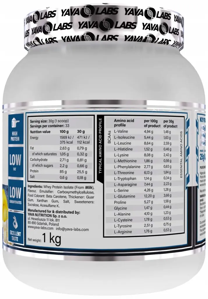 Yava Labs Pure Iso Whey 1kg Izolat Białkowy – Banan